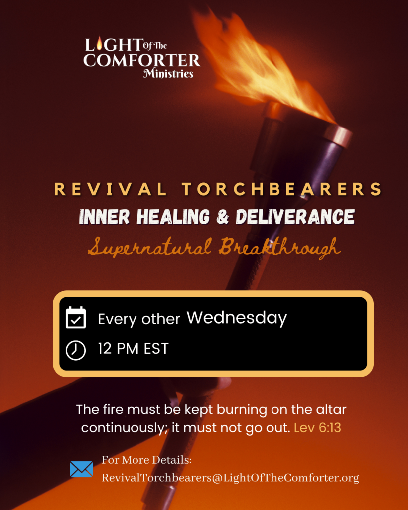 If you would like to join our online meetings through Zoom, Email us to receive zoom link to: revivaltorchbearers@lightofthecomforter.org