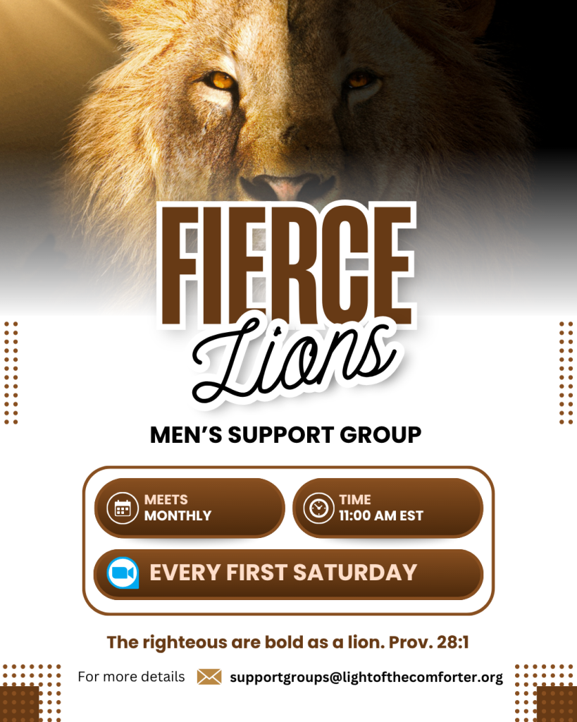 Adult men who are going through the challenges described above will find a safe space to share in this support group. Other men who have gone through many challenges will support you through your struggles so you can become the man (and bold lion) God’s calling you to be. Come find true community with your fellow brothers in Christ, as you are also encouraged and mentored by spiritual fathers.