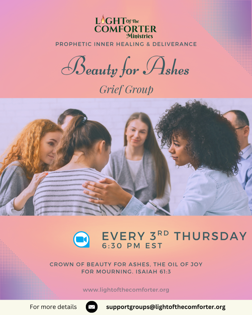 In this support group, you will learn how to find healing and wholeness through the power of Jesus, and receive a revelation of His purpose for your life after loss. As you trust in the Lord’s ways, He will give you a crown of beauty instead of ashes, the oil of joy instead of mourning, and a garment of praise instead of a spirit of despair, as He promises in Isaiah 61:3. You will be equipped with tools to overcome the bully of grief and be filled with a new hope to move forward in God’s glorious plans for your life.